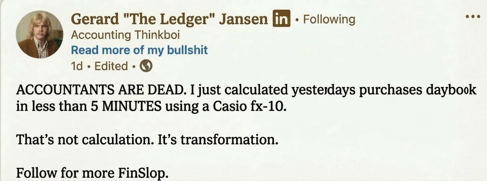 This coincided with the rise of ‘big finance’ in the 80s and big corporate deals. This is also when the expectations of the chief accountant started to evolve into a CFO role. Despite the masses on LinkedIn who talk about this like it’s a 2026 phenomenon.