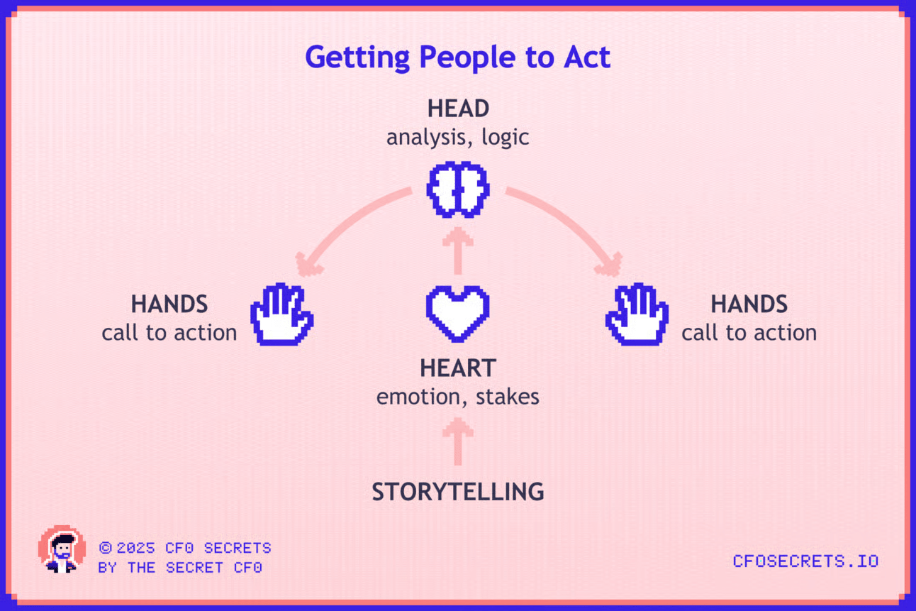 Whenever I need someone to take an unexpected action, or a long series of them, I go back to the Heart, Head, and Hands model:
