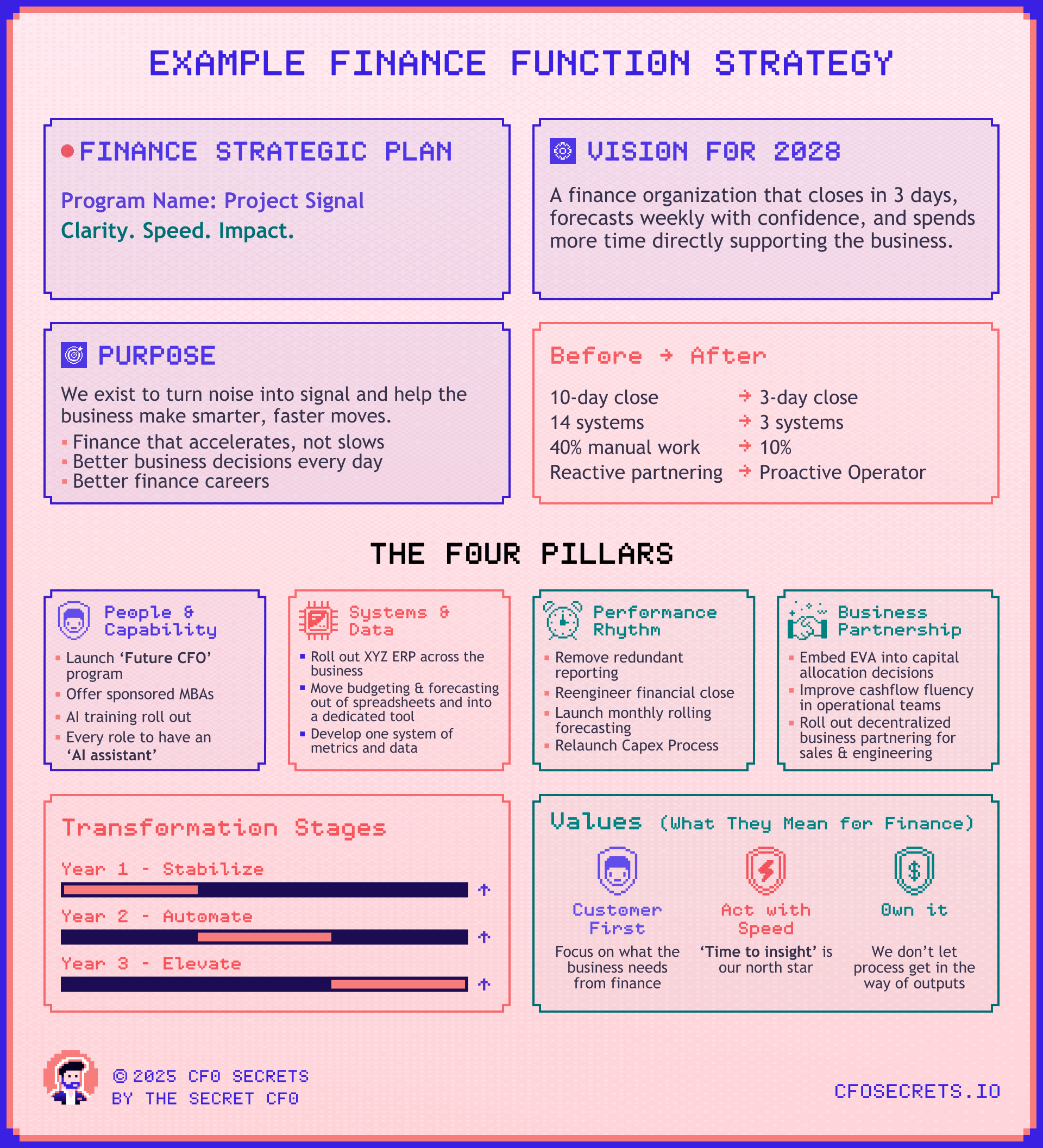 The final output might look simple, but the thinking behind a credible finance strategy is anything but. This is not something you set and forget on your first morning in the job. It cannot be a handful of generic statements. It has to be specific and relevant to your business.